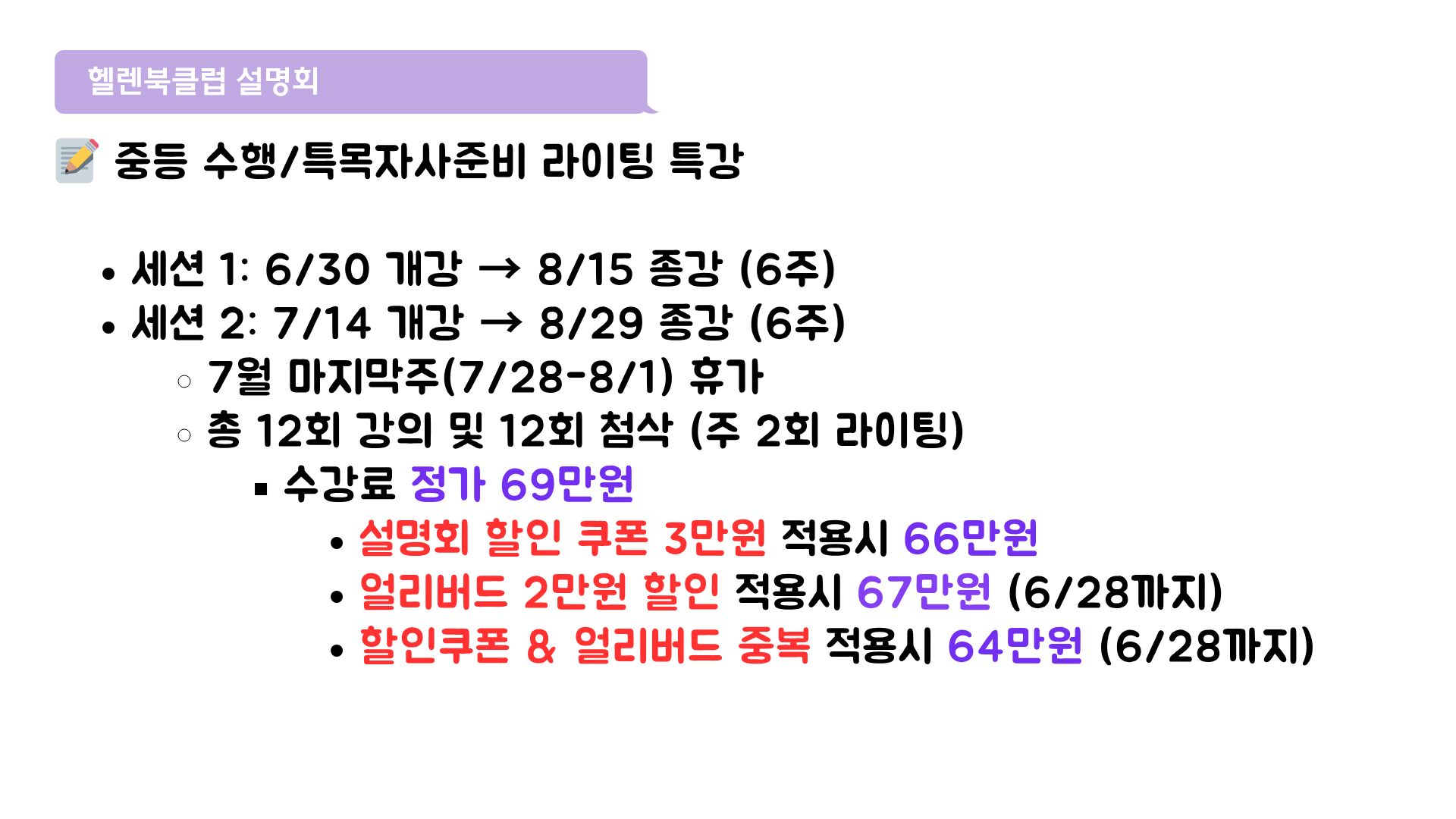 💜 헬렌북클럽 국내학교 여름특강 💜
