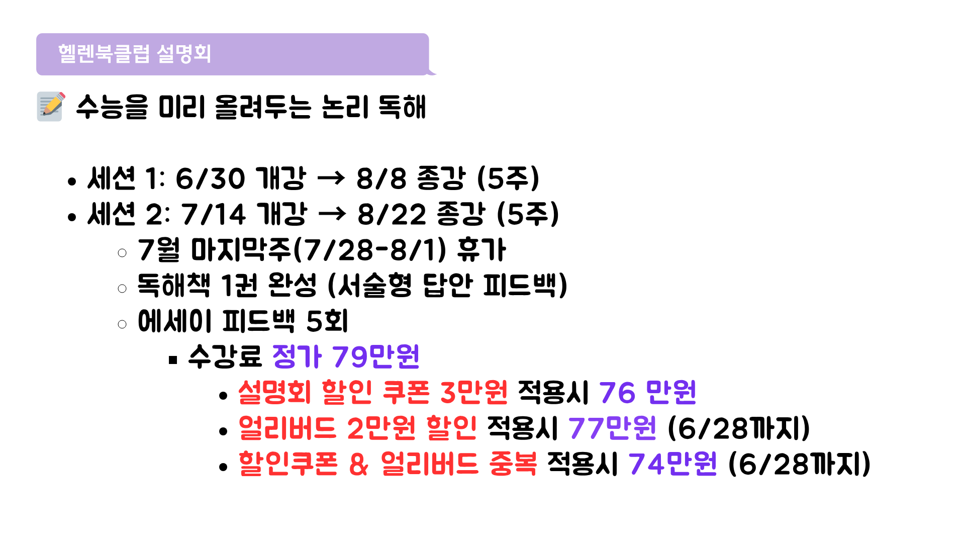 ✨ 헬렌북클럽 대표 헬렌이 직접 진행하는 여름특강 설명회에서 더욱 자세히 알려드릴게요!